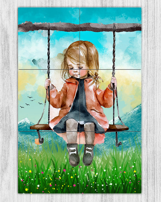 12x18 Little Girl on Swing Art Ceramic Tile Mural